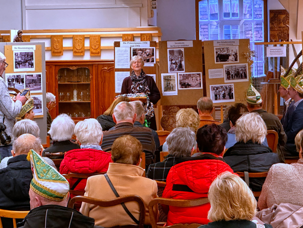 Mit viel Interesse, Erinnerungen und karnevalistischer Verbundenheit wurde am 18. Januar um 15 Uhr die Ausstellung „Vergangenheit des Steinheimer Karnevals“ im Möbelmuseum Steinheim eröffnet. Zahlreiche Gäste waren der Einladung gefolgt, darunter viele Elferräte, Gardisten und Damen der Prinzengarde sowie aktive und ehemalige Karnevalisten.