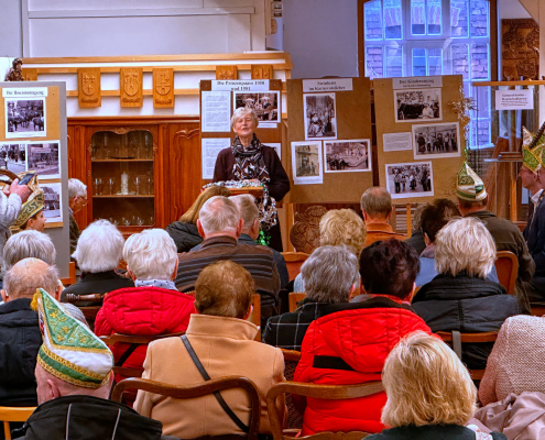 Zur Ausstellung eingeladen hatte Regina Schuler. In den vergangenen Jahren wurde die karnevalistische Ausstellung im Möbelmuseum stets von der Steinheimer Karnevalsgesellschaft ausgerichtet. In diesem Jahr jedoch haben Regina Schuler und Johannes Waldhoff die Organisation selbst übernommen, um diese Tradition weiterzuführen und lebendig zu halten.