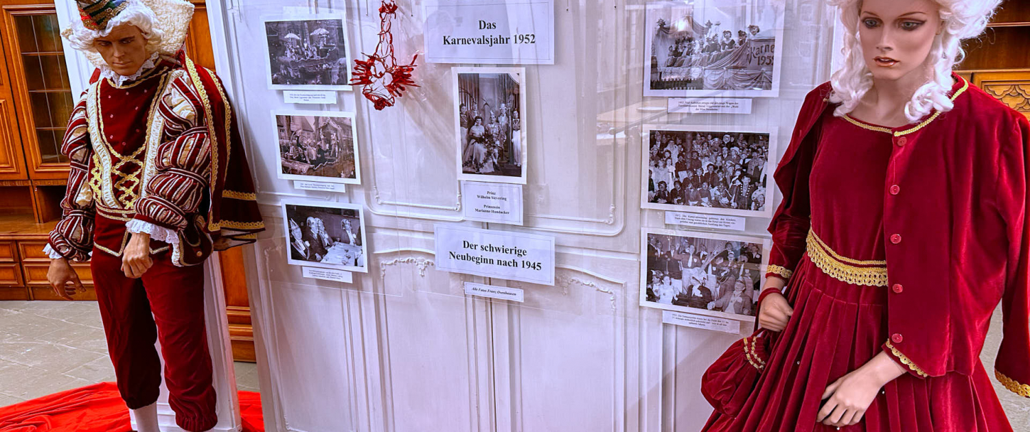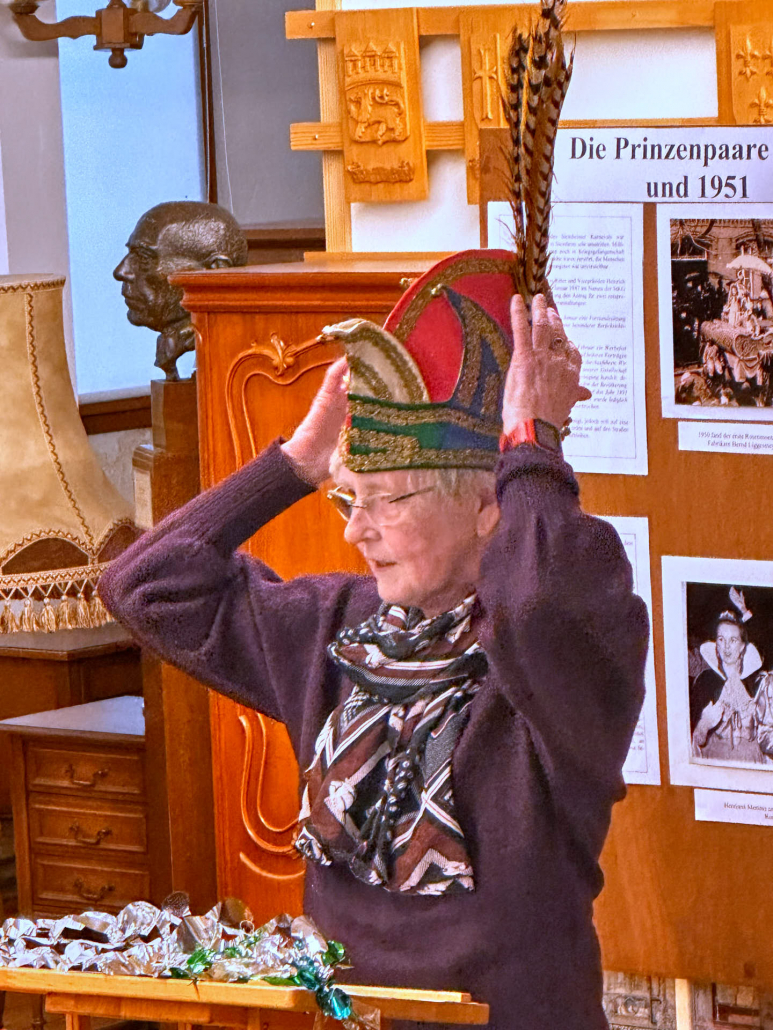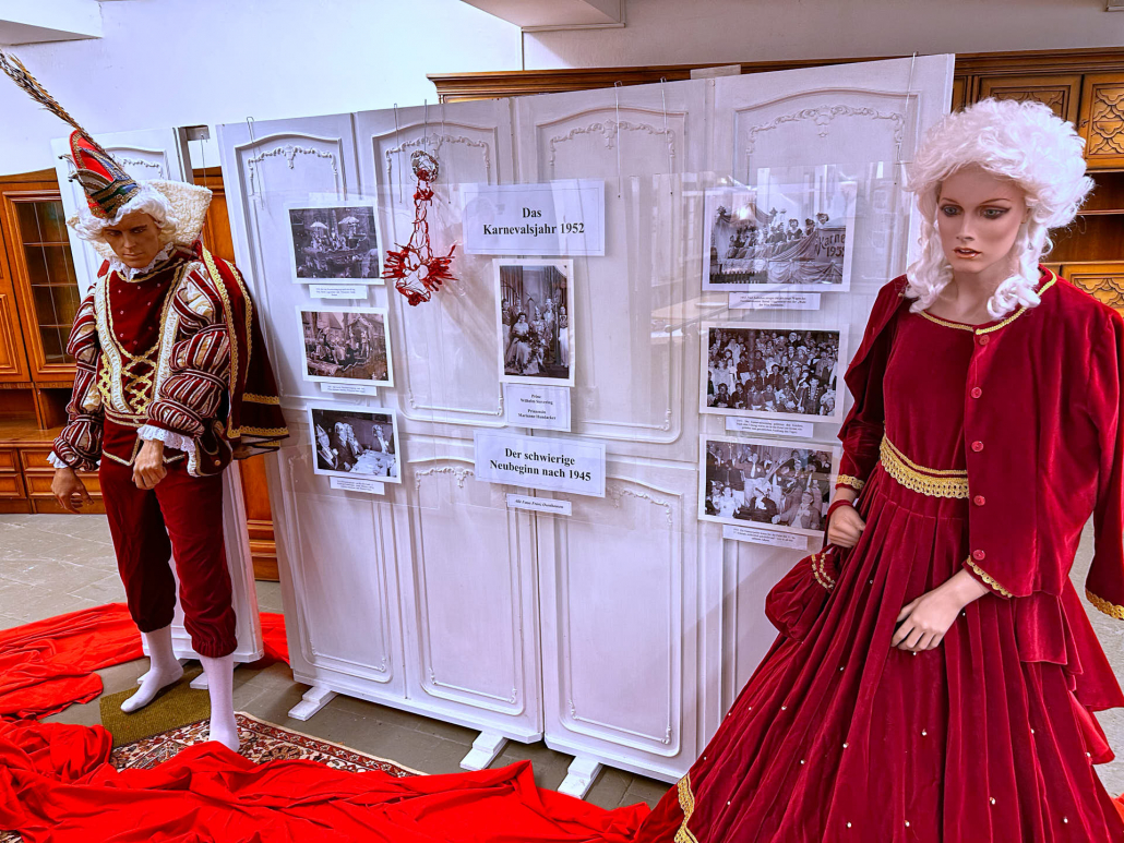 Ein besonderer Blickfang ist die Narrenkappe des Prinzen von 1952, ein seltenes Original, das sinnbildlich für den Aufbruch und die Begeisterung der frühen Karnevalsjahre steht.