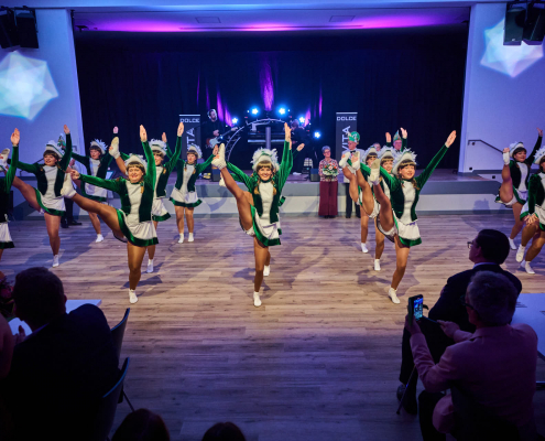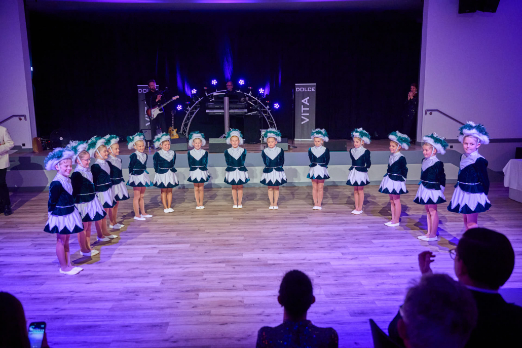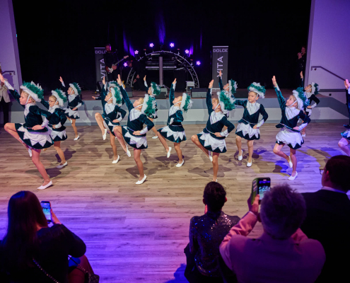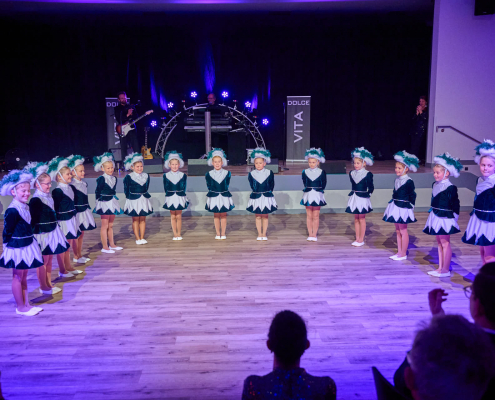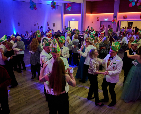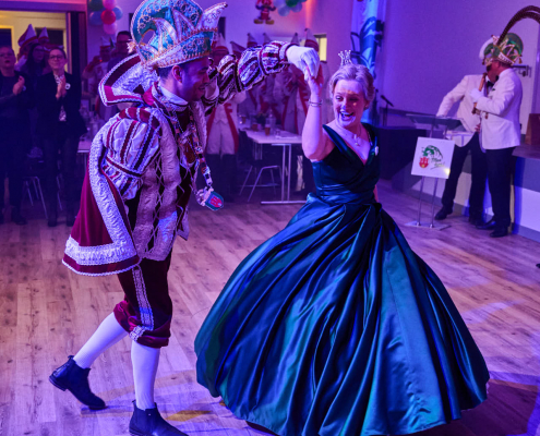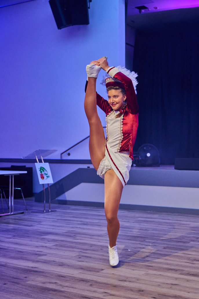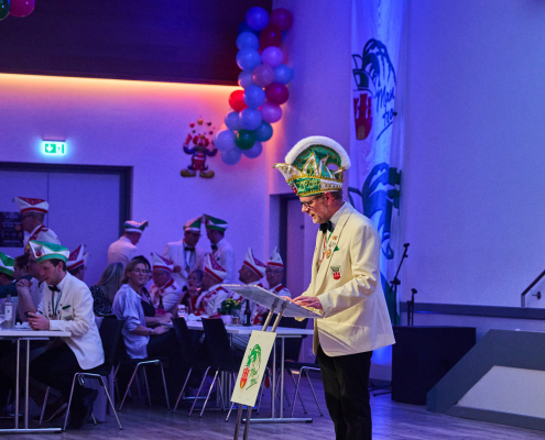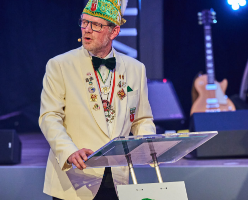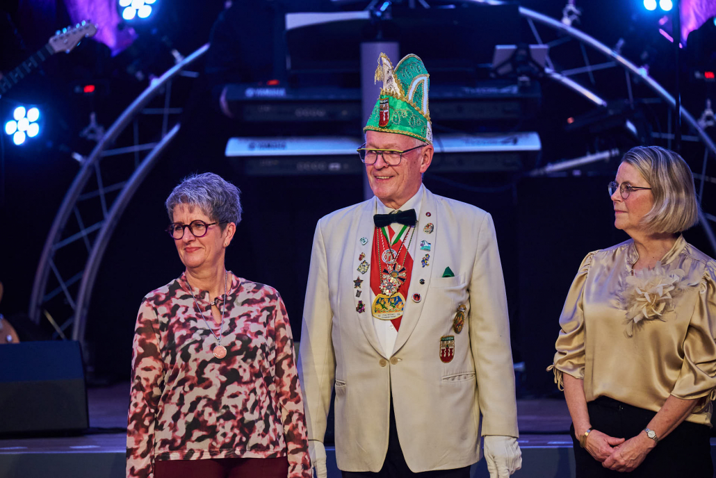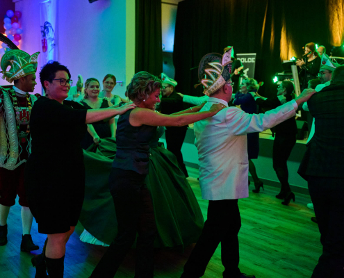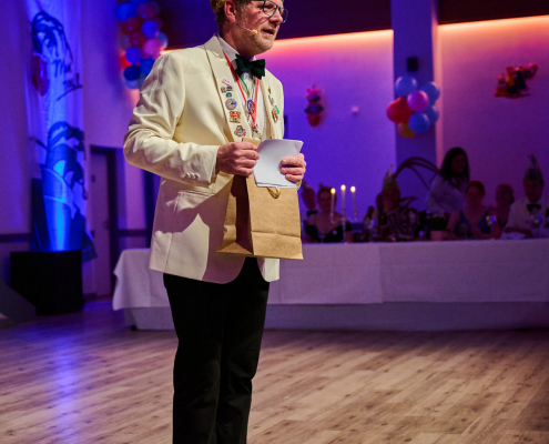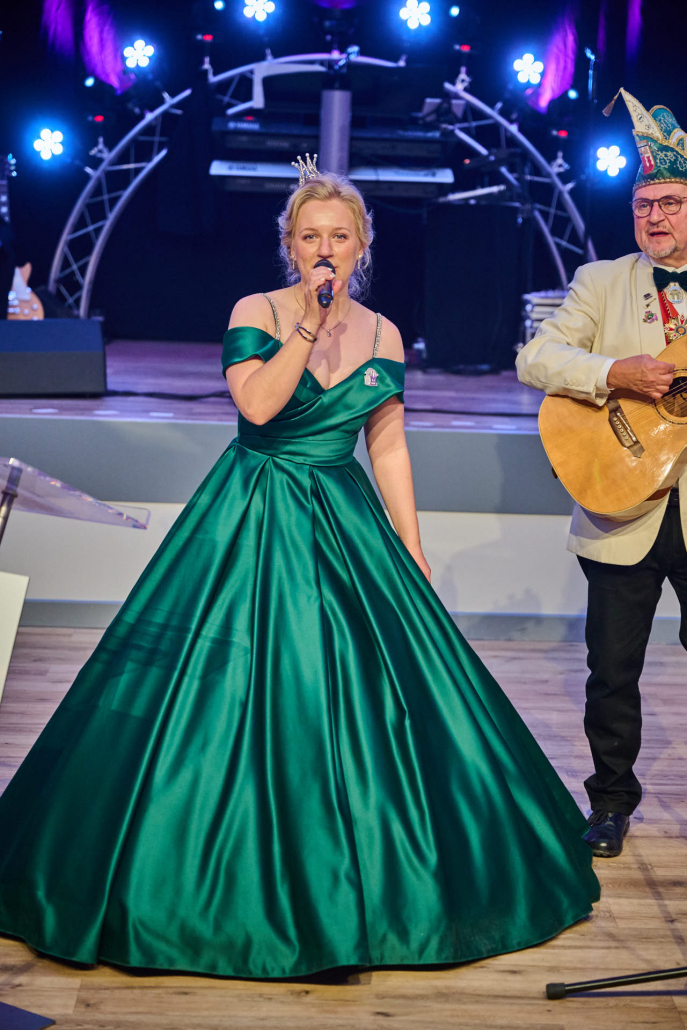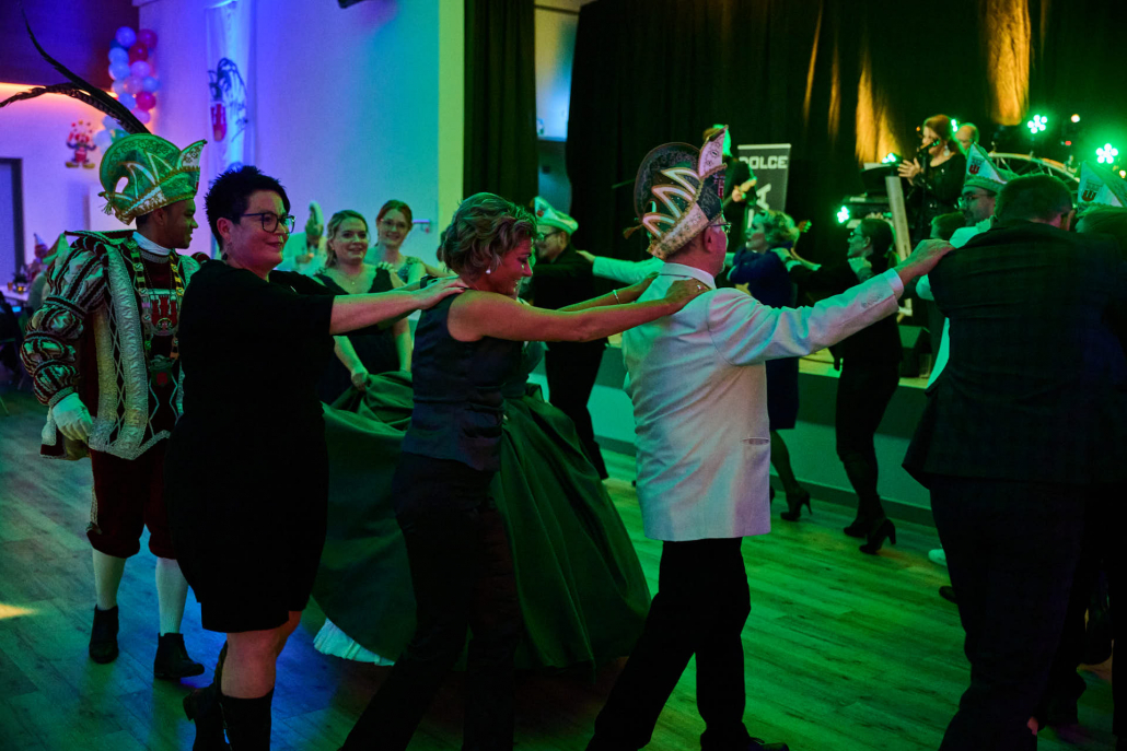 Im weiteren Verlauf erwartete das Publikum ein bunter Mix aus Musik und Tanz, der keine Sekunde Langeweile aufkommen ließ. Für den musikalische Auftritt sorgte das Duo KUUKU – Klaren Udo und Klaren Uta – das mit bekannten Liedern zunächst zum Mitwippen einlud. „Rund um den Kump herum“ brachte die Gäste zum Schunkeln, während das neue Lied „Mein Herz schlägt Man teou“ sich bereits jetzt zu einem wahren Ohrwurm entwickelte. Aber auch die Prinzengarde und Solomariechen zeigten sich in bester Form: Die energiegeladenen Auftritte der Prinzengarde, der Prinzensterne und der Sternschnuppen ließen die Bühne beben. Die Solomariechen Frieda Nolting und Merle Pollmann beeindruckten zudem mit präziser Technik, Dynamik und strahlender Bühnenpräsenz.