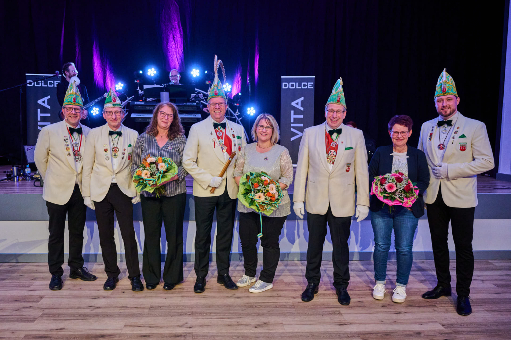 Zu den besonders feierlichen Momenten des Abends gehörten die Ehrungen im Majorat der Garde. Der Hausorden der StKG – die höchste Auszeichnung der Gesellschaft – wurde in diesem Jahr an zwei überaus verdiente Gardisten verliehen: an Andreas Dreier für 16 Jahre sowie an Michael Dellwig für 18 Jahre unermüdliche, engagierte Majoratsarbeit. Diese Ehrung unterstreicht die Bedeutung jener Menschen, die den Karneval durch ihren unermüdlichen Einsatz prägen und über viele Jahre hinweg aktiv gestalten.