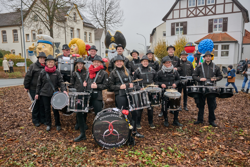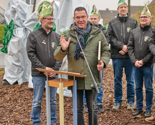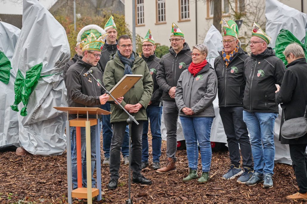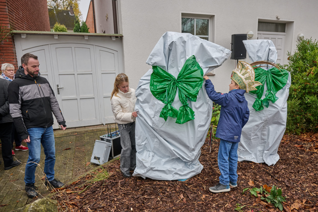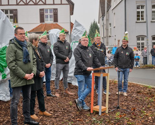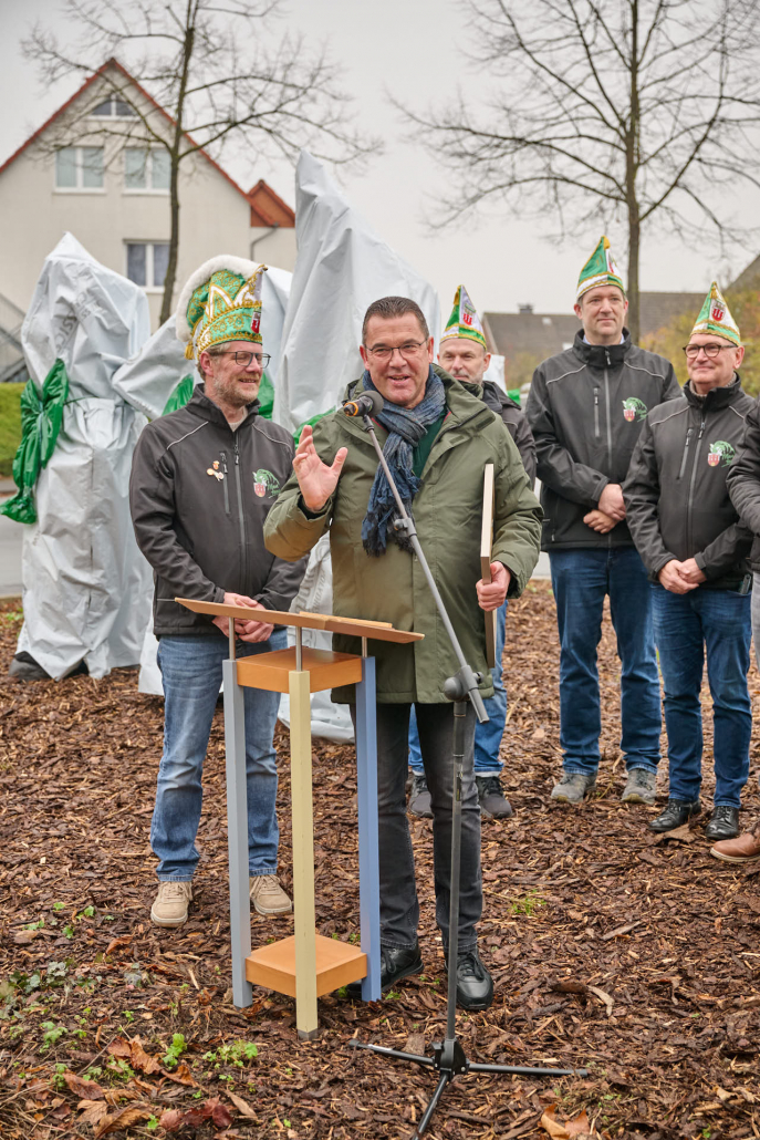 Ab 11:11 Uhr am 8. November 2025 fiel der Schleier: Unter großem Jubel zahlreicher Närrinnen und Narren wurden am Steinheimer Kreisel die neuen karnevalistischen Betonfiguren feierlich enthüllt. Mit dabei waren neben dem Präsidenten der Steinheimer Karnevalsgesellschaft, Axel Remmert-Bobe, auch Bürgermeister Carsten Torke, stellvertretende Landrätin Magdalena Volmert, das engagierte Bauteam hinter den Figuren, das Prinzenpaar, das Kinderprinzenpaar sowie viele begeisterte Zuschauerinnen und Zuschauer.