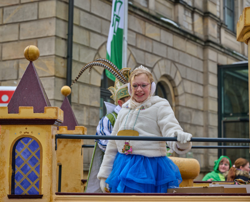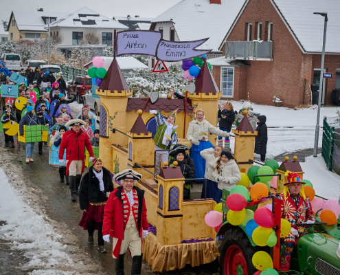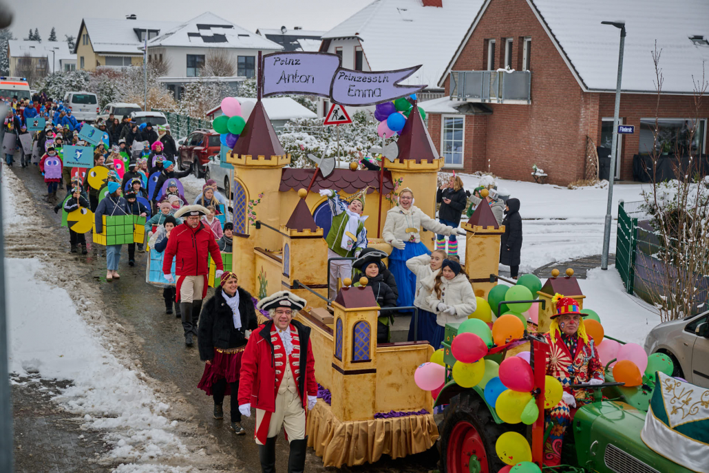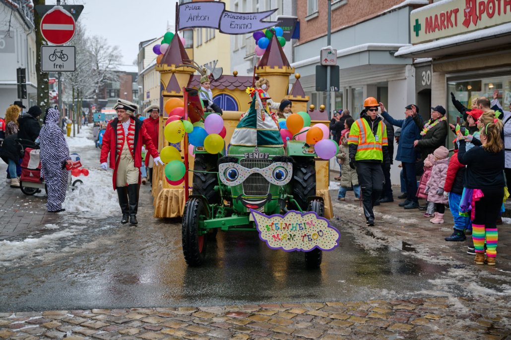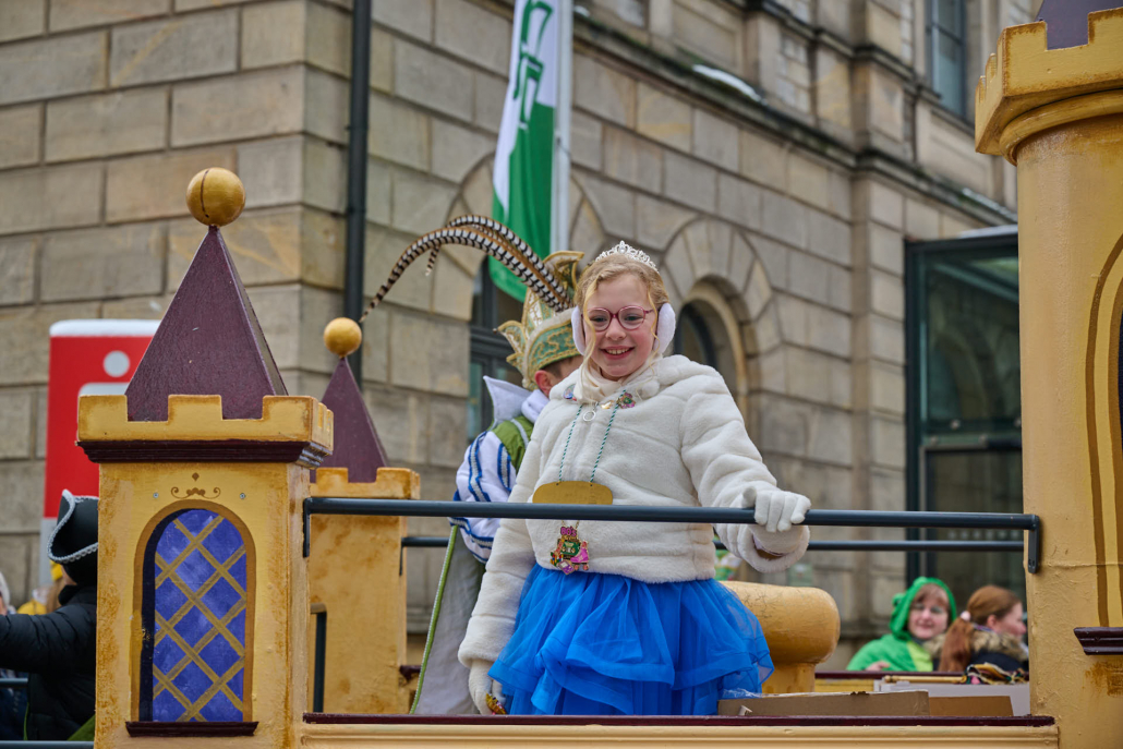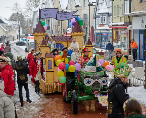 Von der Rathaustreppe halten Prinz Anton, die rasende Rakete, und seine liebliche Prinzessin Emma, der humorvolle Wirbelwind, dann eine große Rede an ihre närrischen Untertanen, ehe sie dann nach ein paar Schunkelrunden noch auf dem Rathaussaal Hof halten.