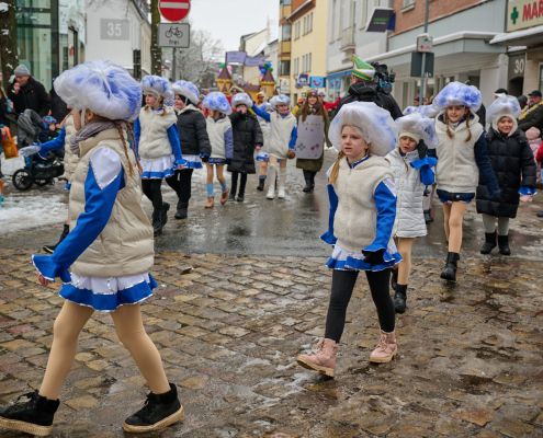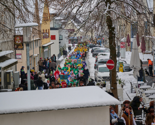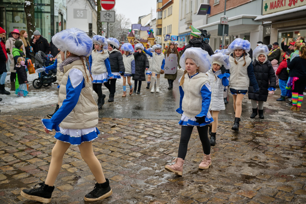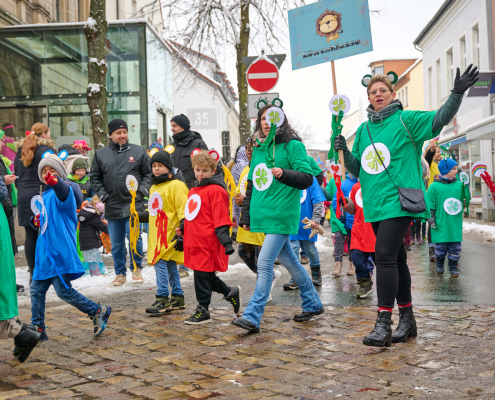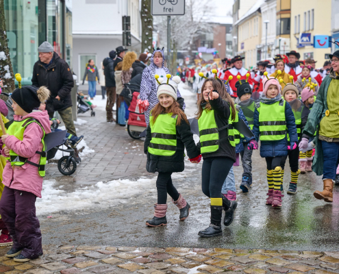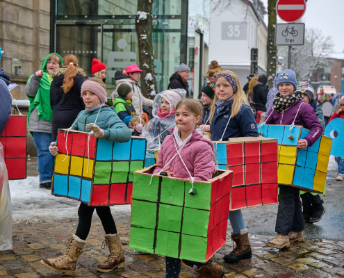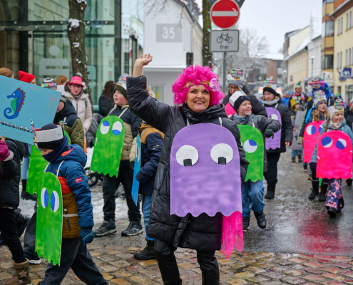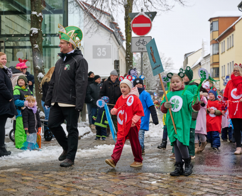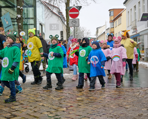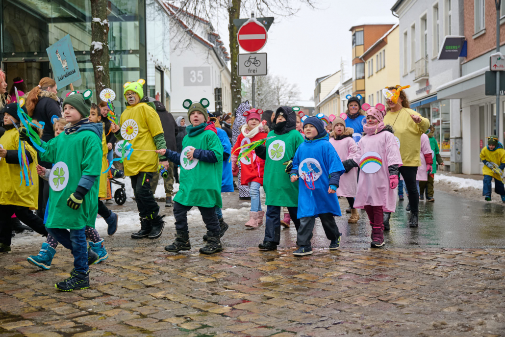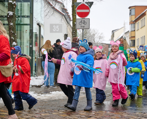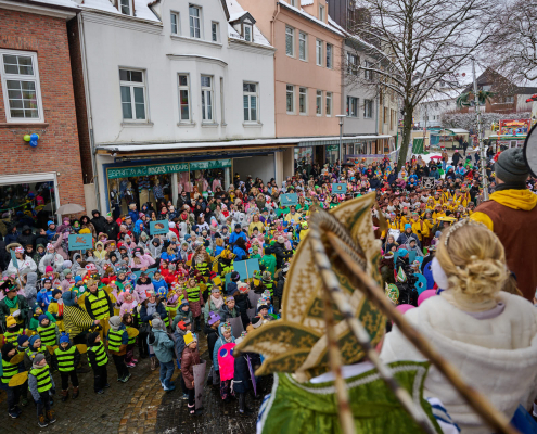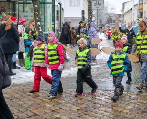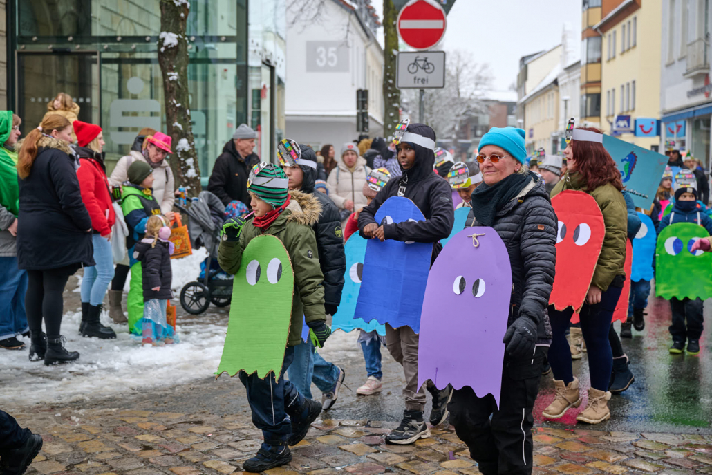 Bunt und laut ziehen die Schüler dann durch die Innenstadt, vor das Rathaus, wo sie vom Bürgermeister empfangen werden.