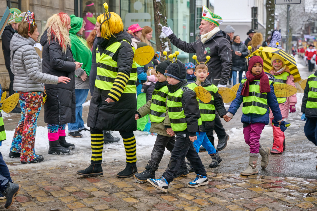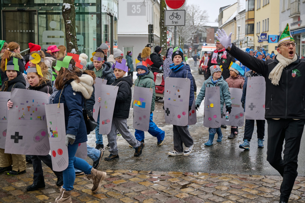 Alljährlich starten die Kinder der Steinheimer Grundschule schon am Rosenmontagmorgen, um 10.44 Uhr, zu ihrem Rosenmontagszug.