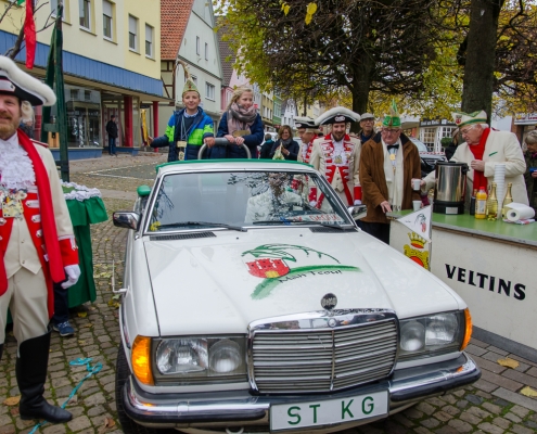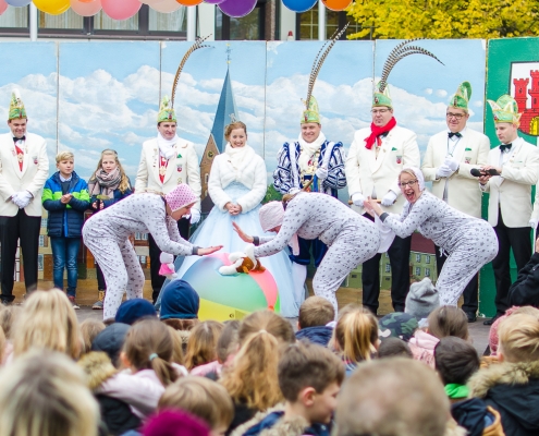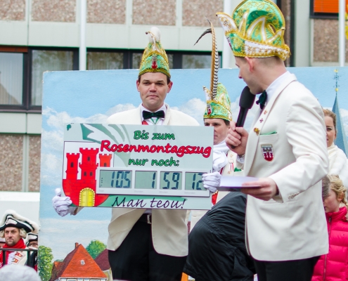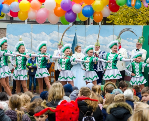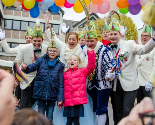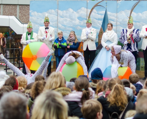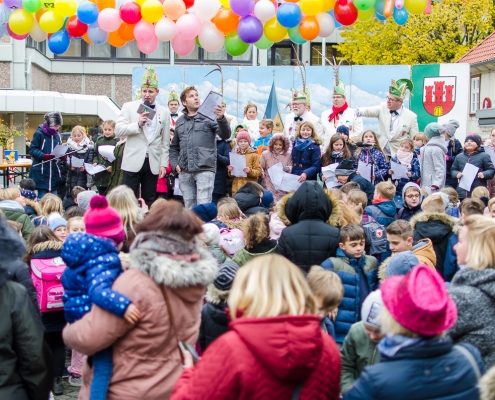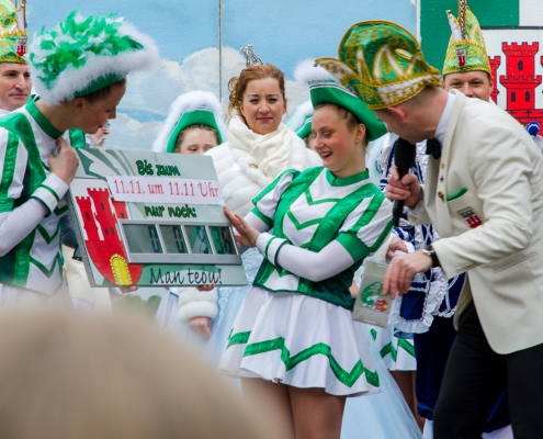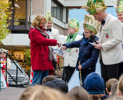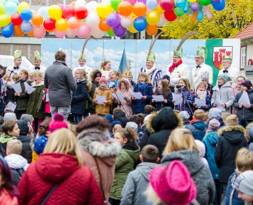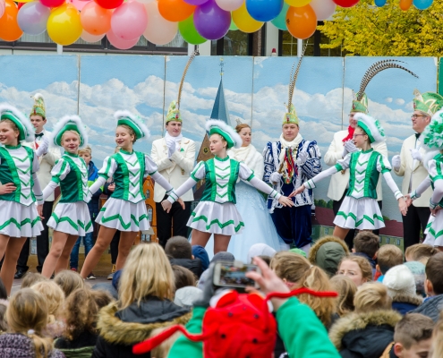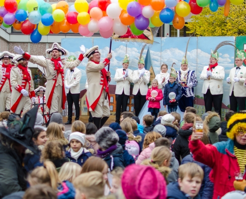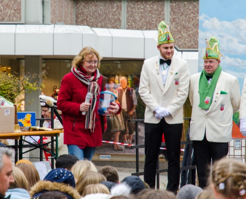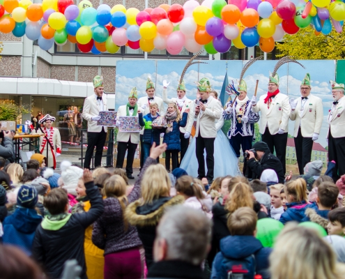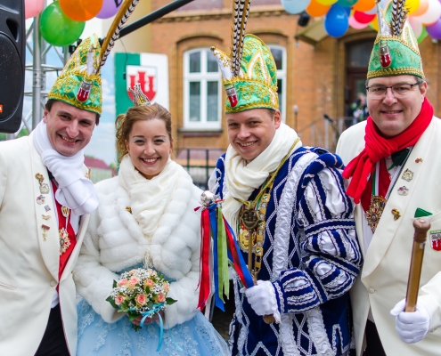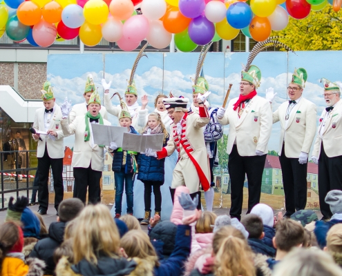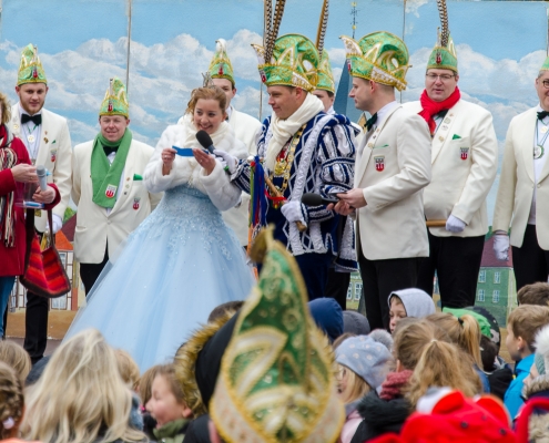 Vizepräsident Markus Brexel hatte ein prima Programm zusammengestellt, das natürlich auch unser Prinzenpaar, Katrin und Christian Hennig, sichtlich genoss. Ganz besonders freuten sich aber die Kinder der Grundschule auf das tolle Programm, denn hier würde heute Ihr neues Kinderprinzenpaar, das auf Paul Pettig und Lilli Wiedemeier folgen sollte, gekürt. Schulleiterin Irmgard Hake hatte gleich elf Kinder in ihrem Lostopf. Prinzessin Katrin zog als Kinderprinzen … Arne Lödige aus der 4a! Der frischgekürte Kinderprinz durfte seine Prinzessin dann selbst ziehen und es ist … Leni Horstmann auch aus der 4a! Das überglückliche Kinderprinzenpaar feierte und schunkelte gemeinsam mit den fröhlichen Närrinnen und Narren noch lange die Kälte vom Marktplatz! Hurra, es ist wieder Karneval!