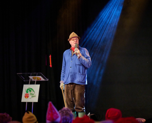 Kommandeur der Garde, Andre Moczek, führte mit seiner gewohnt souveränen und charmanten Moderation durch den Abend. Mit viel Witz und karnevalistischer Leidenschaft leitete er durch ein Programm, das ausschließlich aus externen Akteuren bestand. Kein einziger Programmpunkt kam aus den Reihen der StKG – eine willkommene Abwechslung für das Steinheimer Publikum, das sich entspannt zurücklehnen und die Show in vollen Zügen genießen konnte.
