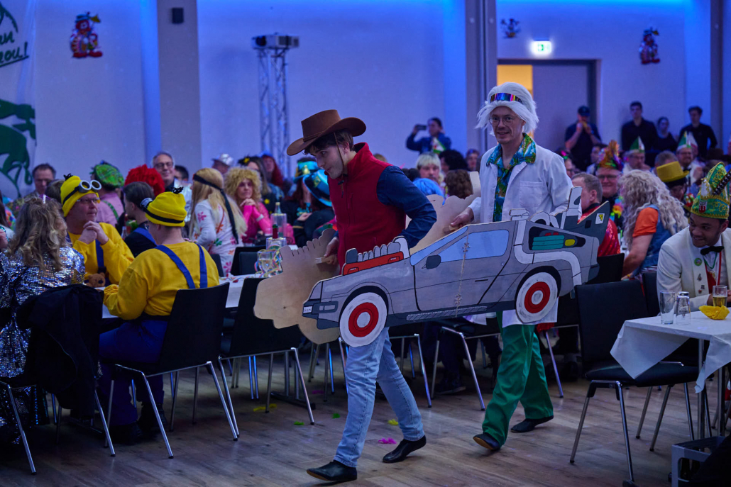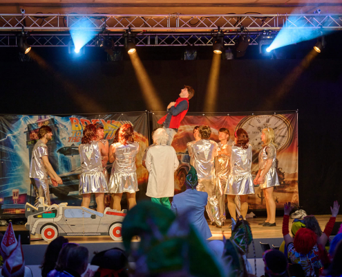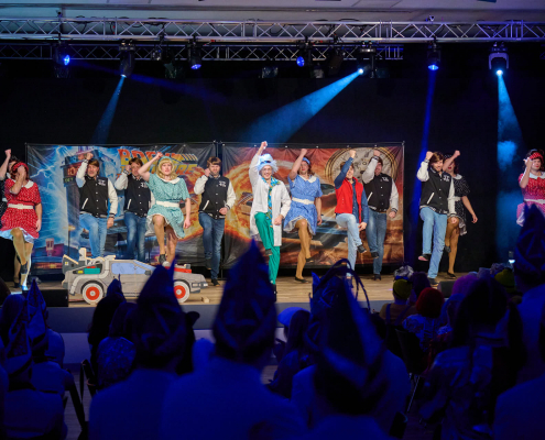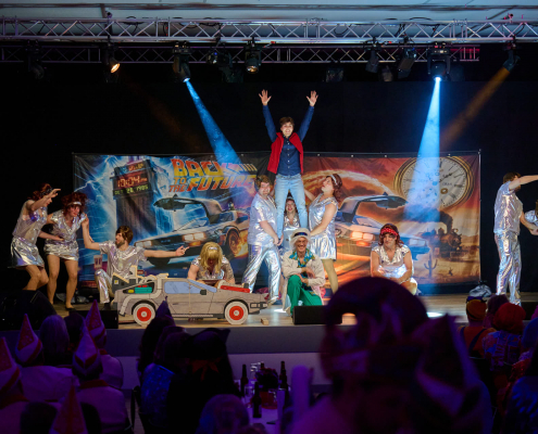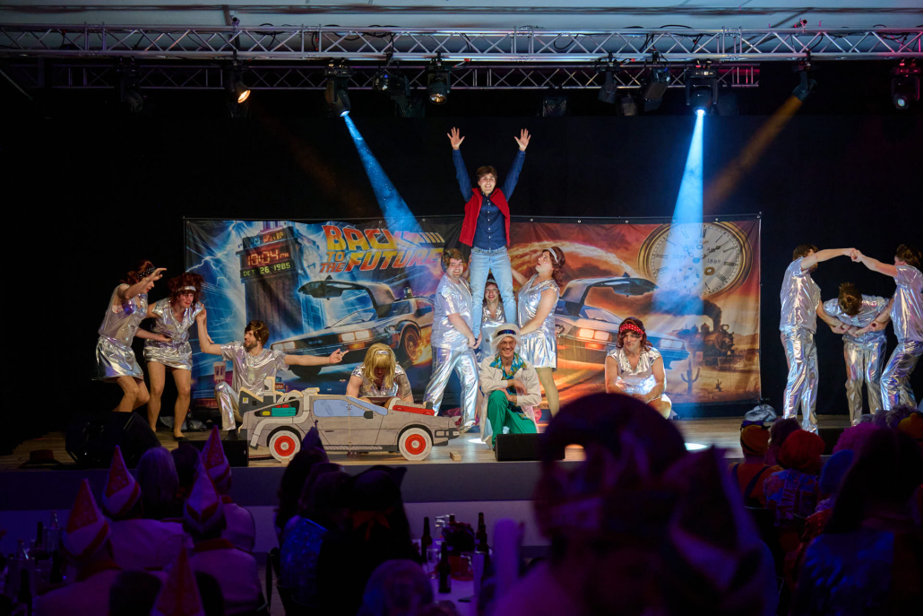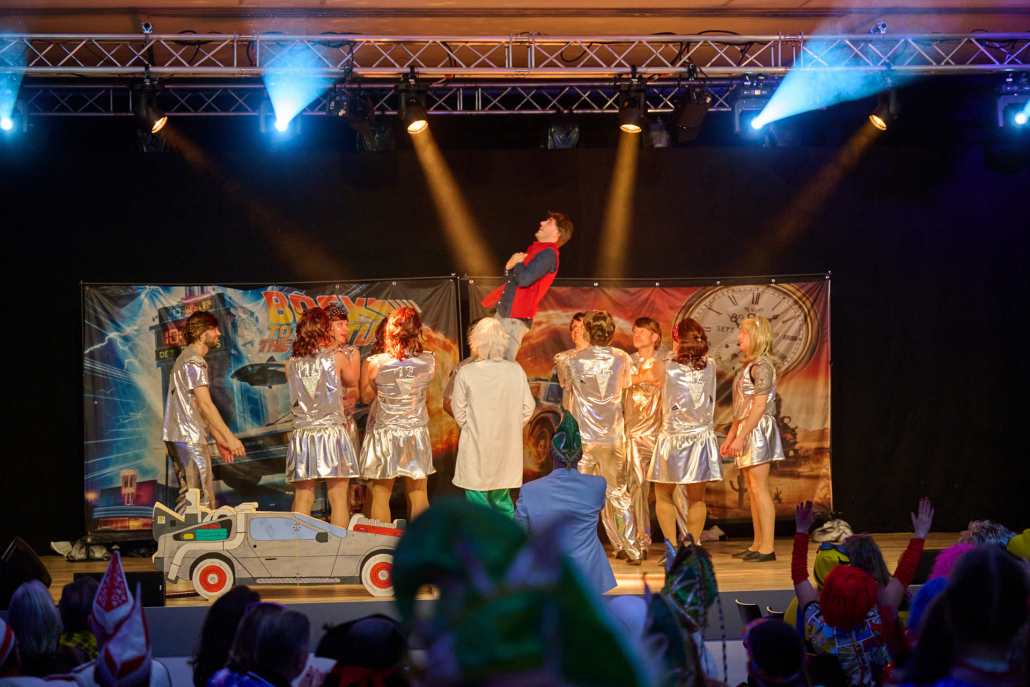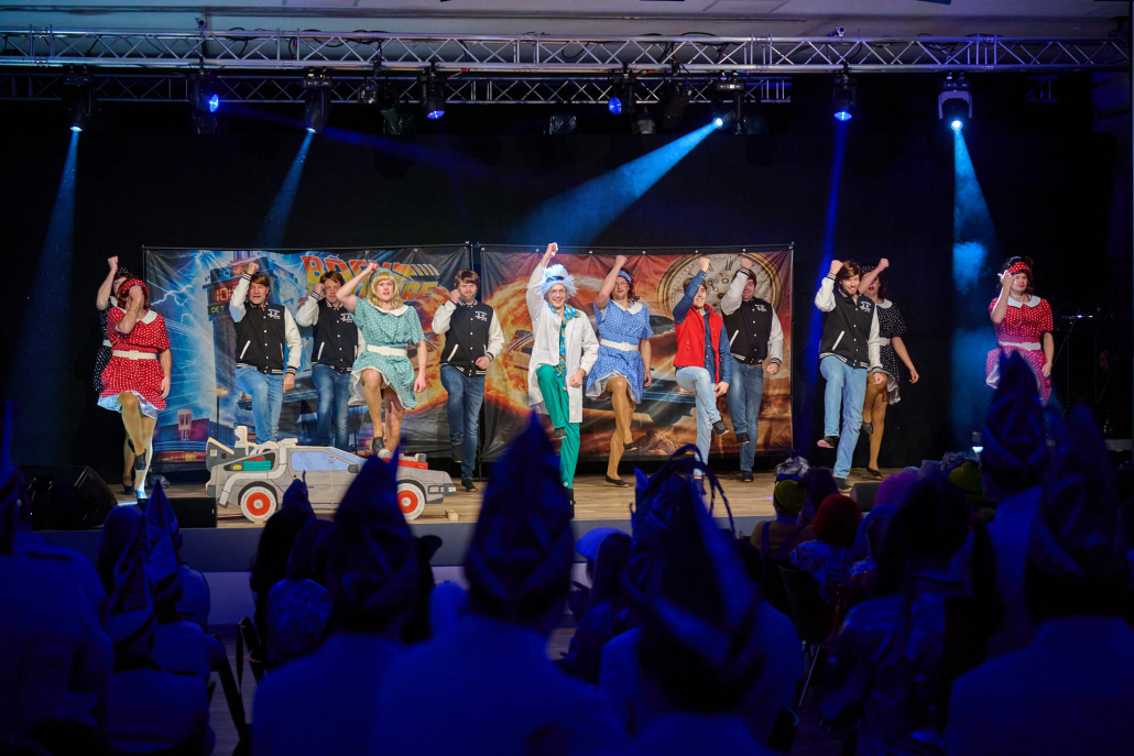 Im Anschluss betrat das Männerballett „Die 12 Tornados“ die Bühne. Auf einer fantasievollen Zeitreise flogen sie gemeinsam mit Marty McFly und Dr. Brown durch verschiedene Epochen und begeisterten das Publikum mit einer mitreißenden Tanzshow. Kreative Choreografien, passende Musik und eine große Portion Humor machten deutlich, dass sich ein Männerballett keineswegs hinter seinen weiblichen Mitstreitern verstecken muss. Der tosende Applaus aus dem Saal bestätigte ihren verdienten Erfolg.