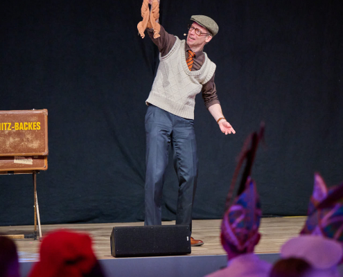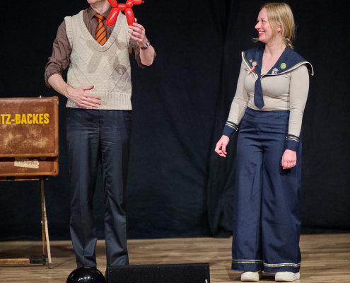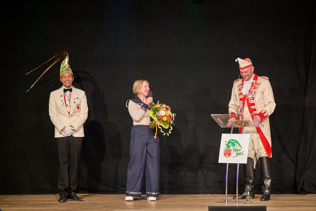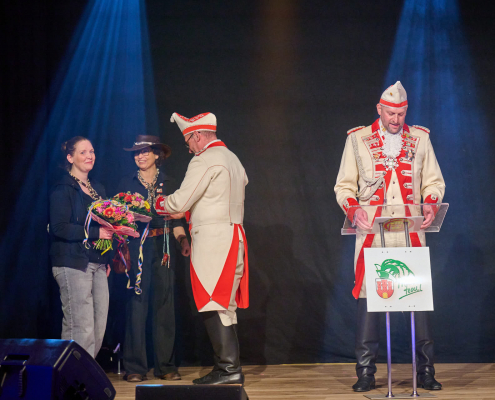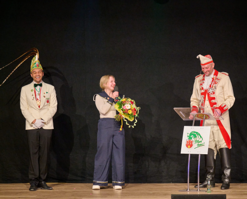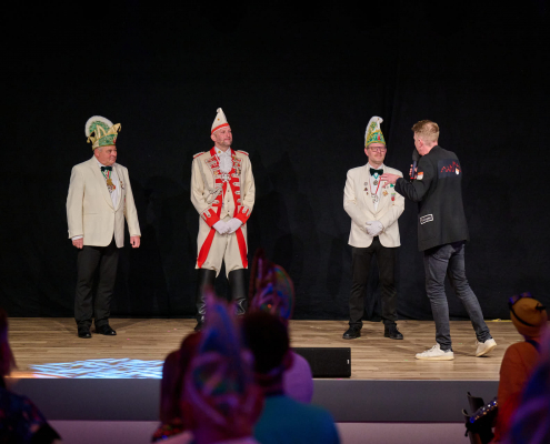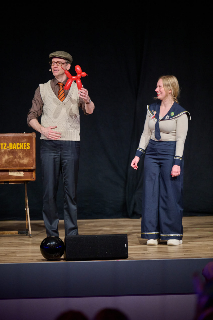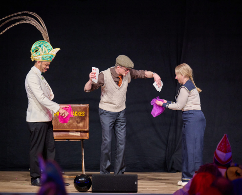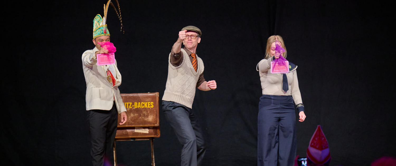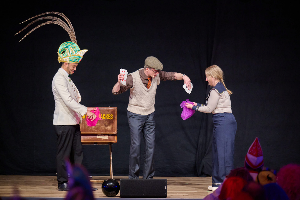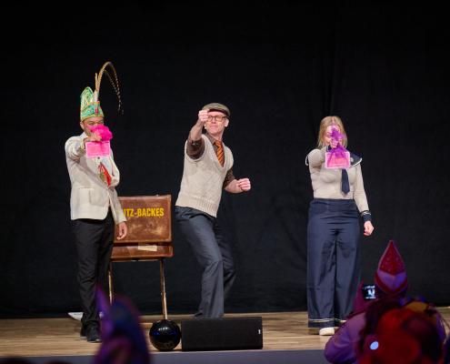 Der dritte Act des Abends war Schmitz-Backes, der mit einer gelungenen Mischung aus Comedy und Zauberei das Publikum in seinen Bann zog. Er jonglierte, ließ Gegenstände auf magische Weise verschwinden und wieder auftauchen und sorgte für staunende Gesichter in der Stadthalle. Besonders unterhaltsam war seine Interaktion mit der noch amtierenden Prinzessin Uta sowie Ex-Prinz Alexander, die ihn bei einem seiner Tricks unterstützten. Karten wechselten scheinbar wie von Zauberhand von einer Person zur nächsten und sorgten für ungläubiges Staunen.