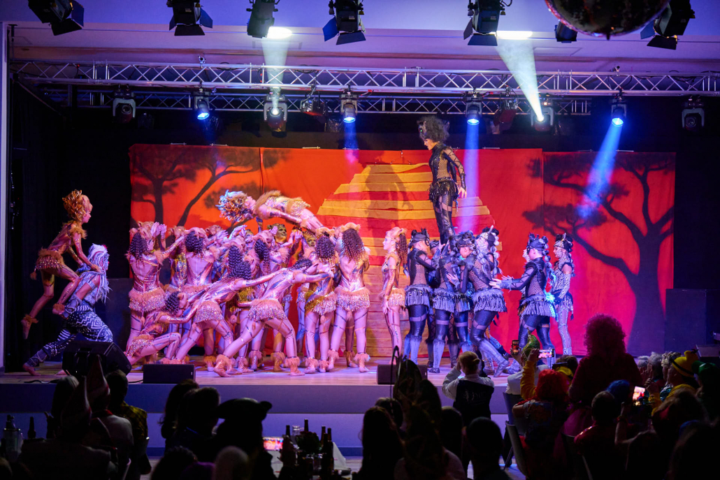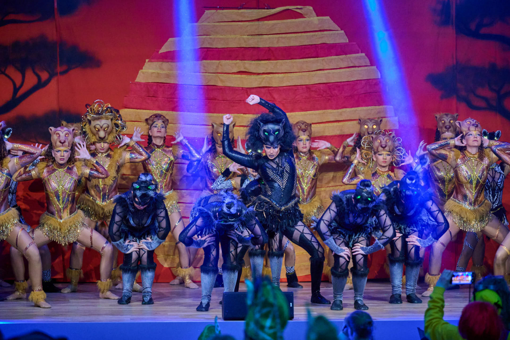 Als vierten Programmpunkt präsentierte sich die Showtanzgruppe des SC Blau-Weiß Ostenland, die bereits beim letzten Auftritt das Steinheimer Publikum begeistert hatte. Mit ihrem Showtanz zur Geschichte des „Königs der Löwen“ entführten sie die Zuschauer in die afrikanische Savanne. Eigens geschneiderte, detailreiche Kostüme und eine ausdrucksstarke Choreografie ließen so manche große Musicalshow in Hamburg vor Neid erblassen und sorgten für langanhaltenden Applaus.